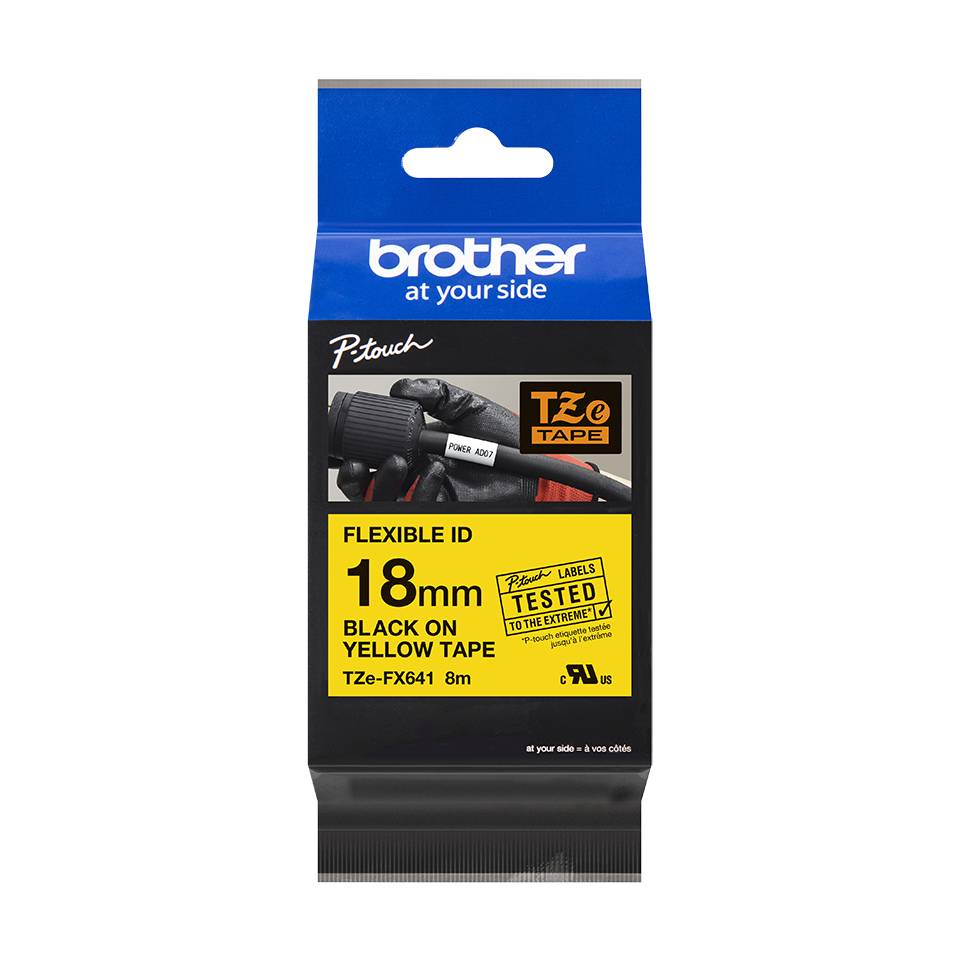 Deze 18 mm TZe-FX641 flexibele ID labeltape is speciaal ontworpen voor gebruik bij het labelen van kabels en buizen, en is door Brother uitvoerig getest om te zorgen dat u snel en efficiënt identificatie labels kunt afdrukken. Met de speciaal ontwikkelde lijmlaag waarmee u labels gemakkelijk op kabels, pvc-buizen of ander cilindervormige voorwerpen kunt plaatsen, is de Brother TZe-FX641 labeltape zwart op geel ook geschikt voor gebruik op sterk gebogen oppervlakken zoals leidingen en pijpen. Uw label kan herhaaldelijk om de kabel worden gewikkeld, of als vlaggetje aan elkaar worden geplakt.Onze gelamineerde labels zijn te gebruiken met met diverse Brother P-touch labelprinters, zijn ontwikkeld om lang mee te gaan en zijn bestand tegen extreme temperaturen, zonlicht, water, chemicaliën en slijtage.